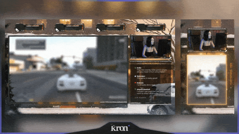 📸 Moldura da webcam 16:9: sua câmera facial se integrará perfeitamente a este design urbano.